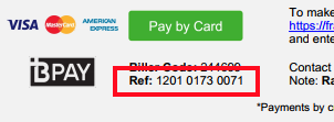 The BPay reference number can be found in the footer area of your invoice or anticipated trust deposit or statement, as highlighted in this example:
